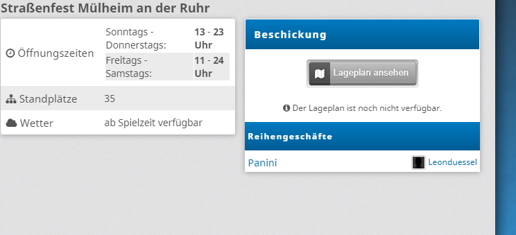 Ist des so wie bei der ersten Veranstaltung wenn man das Geschäft aufgebaut hat das man dann am Nächsten Tag anfangen kann?