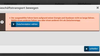 So jetzt ein anderes problemm ich wollte weiter fahren und jetzt ich kann nicht weil die fahrer zu wenig energie haben hmmmm also da sehe ich noch potenzial zu verbessern mit angabe so wie....mit hänger auf die tankstelle fahren weil ich habe abgebaut in antwerpen und bin eigentlich mit hänger zum zwischenstop gefahren zum tanken also sollte das auch so sein das ich mit hänger weiterfahre und der nicht denn hänger irgendwo abstellt und zum tanken fahr.....weil im realen leben hänge ich auch nicht denn hänger ab um zum tanken zu fahren und dann muss ich wieder zurück fahren und denn hänger holen.....so und nun zu meinem problemm ist im anhang ich kann nicht weiter fahren weil mein personal erschöpft ist das ist nicht gut bei gott nicht.....so und jetzt wohnwagen aufbauen und schlafen oder wie das macht keinen sinn tut mir leid. entweder der hänger hängt oder er hängt nicht.MFG Kore1