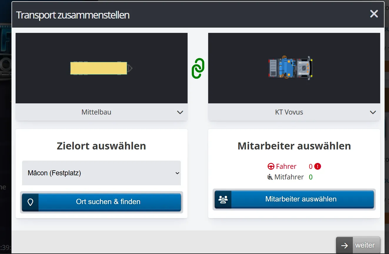 Dann habe ich den ( KT Aritudo / Level 4 ) gekauft , mit einen bei Jobanfragen gefundenen Mitarbeiter für die Fahrt eingesetzt , Nach Ankunft, essen, duschen lassen und ihn dann gekündigt. aufgebaut am Standort wo ihn Brauchte und die Leute darein gesetzt.