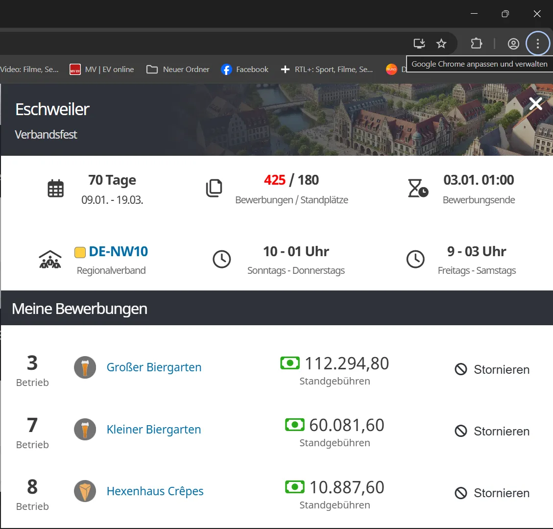 hier bekommt man 6 Tage vor Spielbeginn erst eine Zusage. de brauch schon 14 tage aufbauzeit und abbau zeit