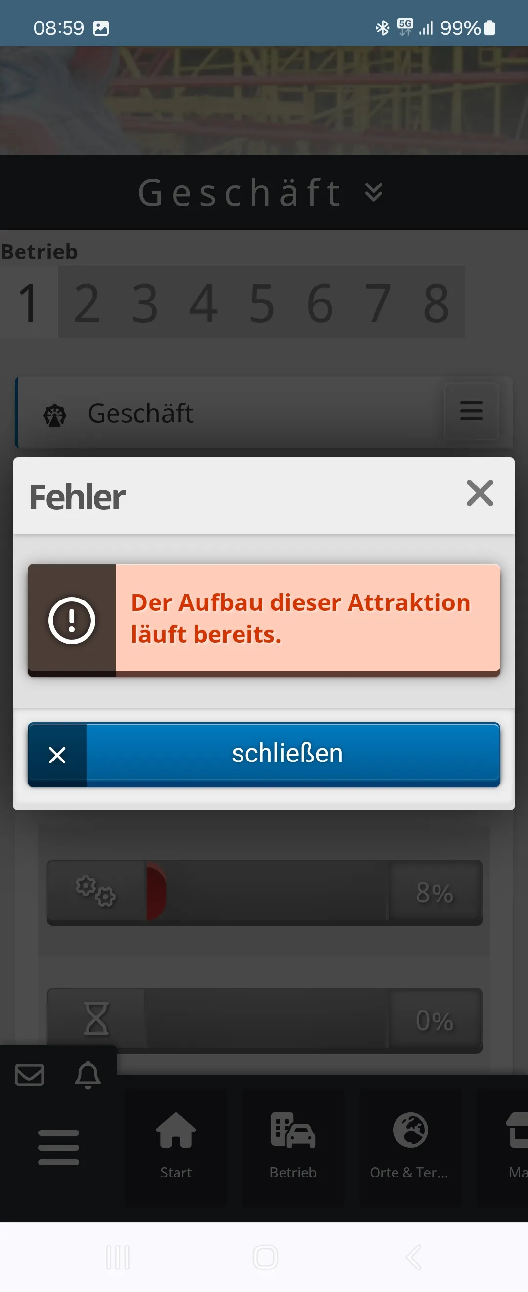 Habe gestern mein Fahrgeschäft umgesetzt und wollte es heute morgen aufbauen. Konnte auch die MA auswählen und bestätigte den Aufbau.