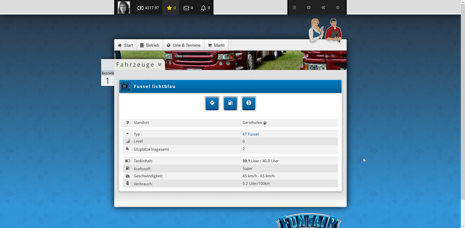 Aber ich finde sogar das die Einnahmen zu viel sind.Ich war jetzt effektiv gerade mal auf 2 Plätzen (bei 5 angemeldet gewesen / 2 nicht geschafft und 1 läuft morgen an) und hab täglich meine Jungs arbeiten lassen. Sie haben dass nicht immer gemacht. Bin also an manchen Tagen leer ausgegangen. Bin jetzt schon lvl 2,5 kann mir längst ein lvl 2 Geschäft kaufen. Habe aktuell auf dem Konto ca 17000 und bereits zwei Autos, 2 Mitarbeiter und fühl mich gerade erst so wohl mit dem was ich tun. Hab aber jetzt Stress weil ich jetzt bereits ein besseres Geschäft haben könnte aber das geht mir einfach zu schnell. darum bleib ich erstmal beim Backfisch.