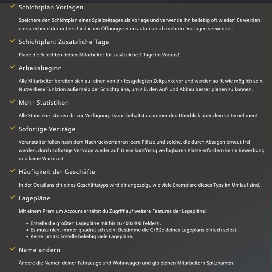 Warum gibt es auf den lange dauernden Festen eigentlich nirgends einen Ruhetag o.ä, das wäre vielerorts realistisch und würde die kurzen Veranstaltungen auch ein wenig attraktiver machen, wenn ein Tag in der Woche bei mehrwöchigen Veranstaltungen so und so nichts verdient wird? Dass das Personal 4 Wochen am Stück täglich arbeitet ohne freien Tag ist ja jetzt auch eher wenig realistisch.