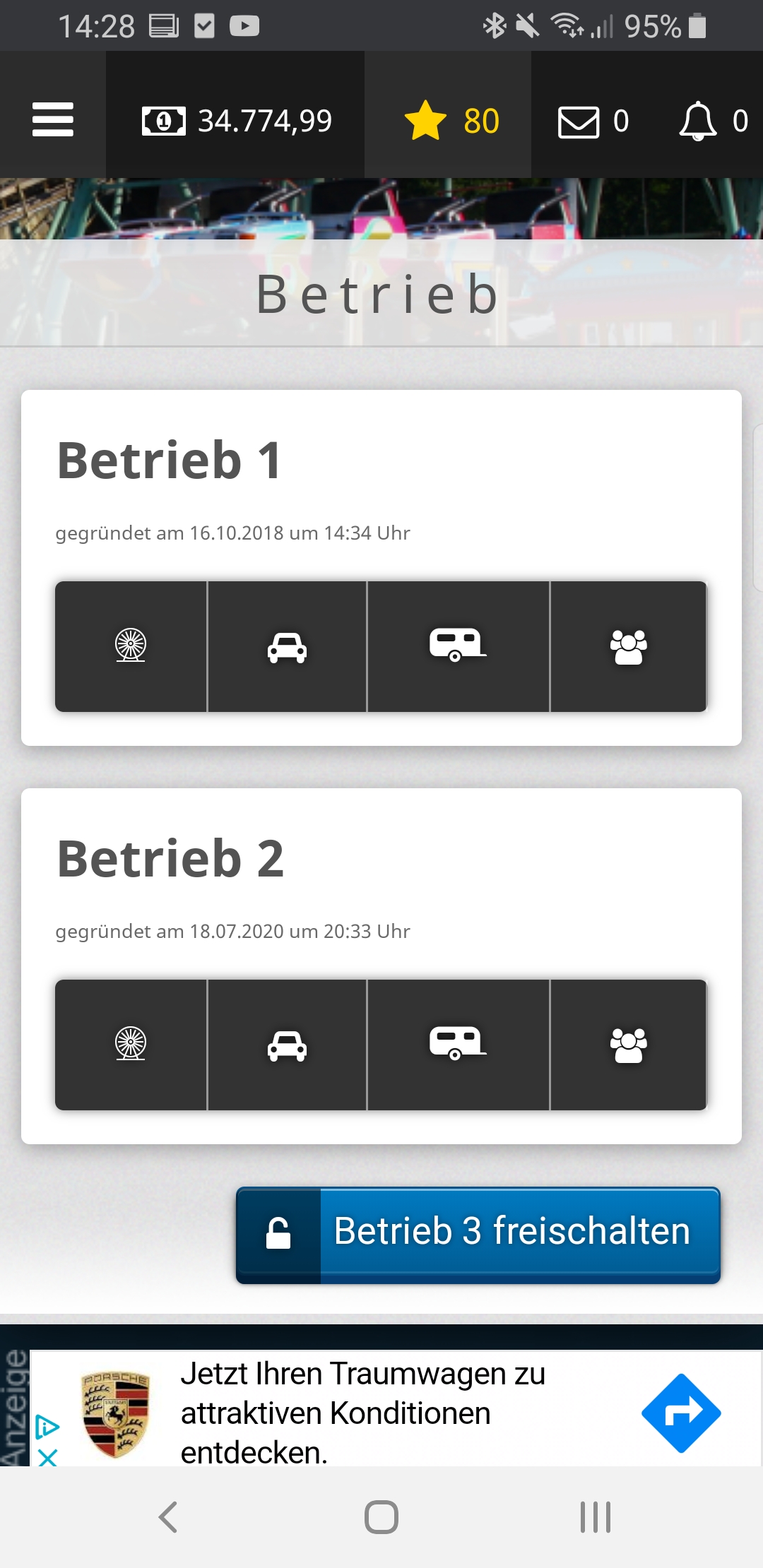 Zum Beispiel anstatt "Betrieb 1" den Namen des Geschäftes, aktueller Standort (vielleicht sogar mit Wetter-Icon), Spielzeit von-bis (vielleicht sogar mit aktuellem Status wie "Geschäft geöffnet") , aktueller Kassenstand.