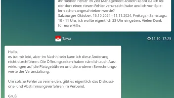 Ich habe dem Support denn Hinweis gegeben das sich bei den Zeiten für Freitag und Samstag ein Fehler meinerseits eingeschlichen hat mit der Bitte um Änderung der Zeiten. Leider habe ich bis dato keine Antwort erhalten. Nochmals danke für den Hinweis und wir vom AT-2 werden versuchen das sich keine Fehler in den Zeiten mehr schleichen. Viele Grüße aus der schönsten Stadt Österreich. Tawa -
