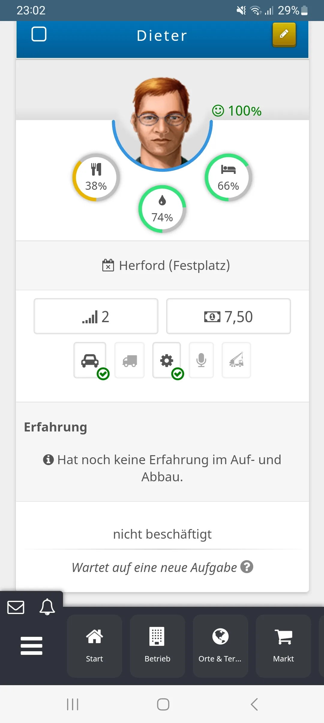 Ich brauche dafür 1 Mitarbeiter auf Level 2 und das ist er