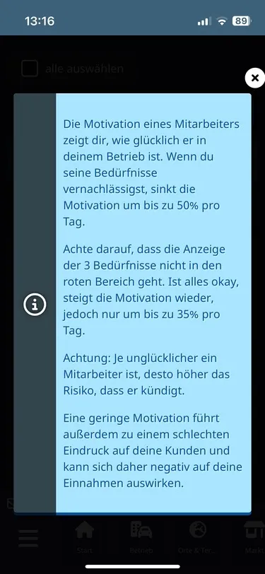 Man hat im höheren Level derzeit keine Möglichkeit, seine Betriebe zu optimieren. Wenn ich jetzt meinen Betrieb so optimieren möchte, dass alle Erfahrungen mit dem Geschäftstyp Achterbahn sammeln können, kann ich derzeit nur 7 Mitarbeiter entlassen (oder am Firmensitz zwischenparken), neue einstellen und zusätzlich leveln.